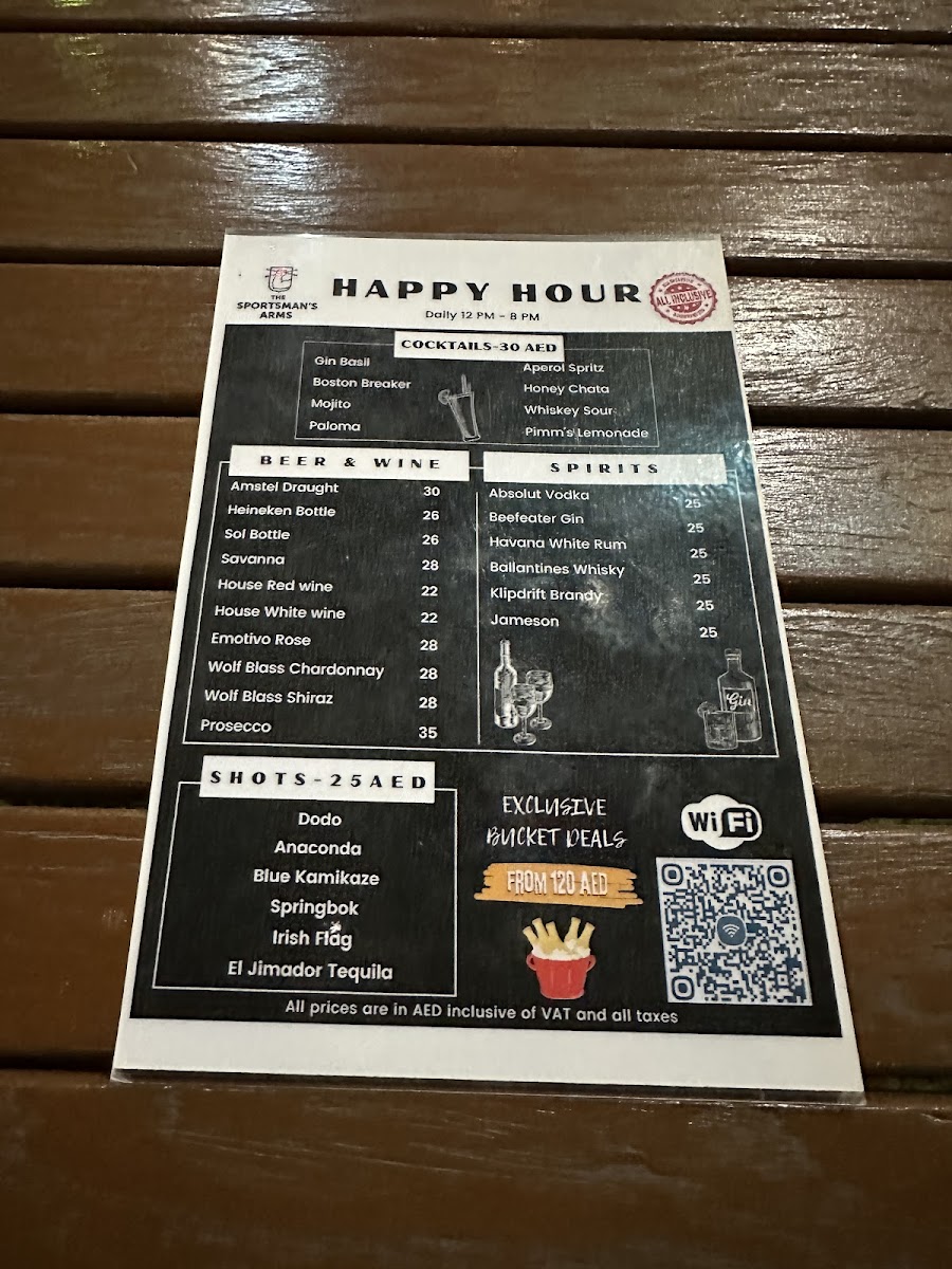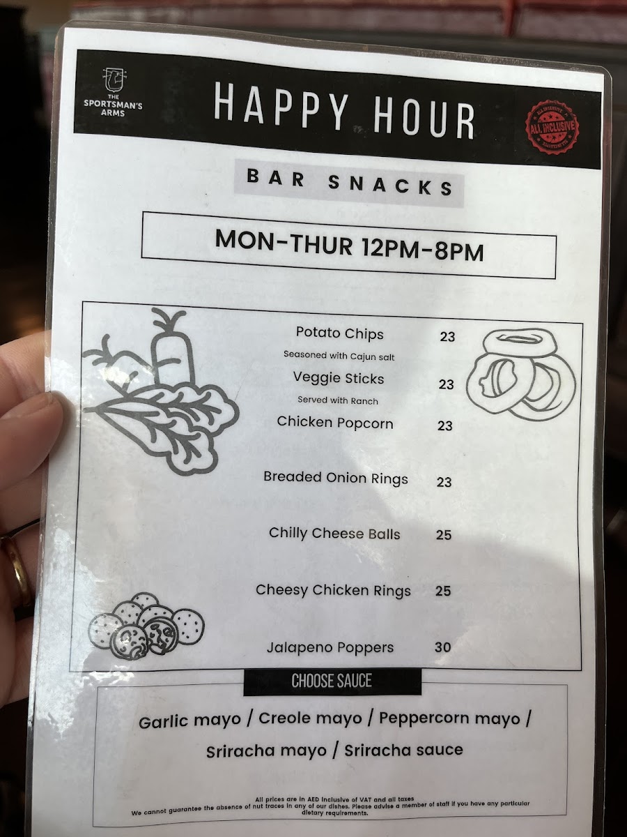 Happy hour from 12 PM to 8 PM brings enticing drink offers, while the friendly staff ensure a memorable experience. Patrons can indulge in the all-you-can-eat-and-drink package on Thursdays, presenting superb value. A visit to The Sportsman's Arms promises excellent food, attentive service, and a lively atmosphere—definitely a must-try in Zayed Sports City!
